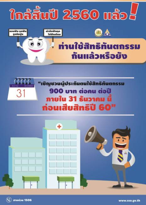 ส à¸à¸ à¸à¸£à¸°à¸ à¸à¸ª à¸à¸à¸¡à¹à¸à¸à¸²à¸£à¸à¸³à¸ ภà¸à¸£à¸à¸à¸à¸¥ มà¸à¸°à¹à¸£à¸ าภà¸" à¸"ภภภายหร à¸à¹à¸¡ from cms.dmpcdn.com การถอนฟัน อุดฟัน ขูดหินปูน และผ่าตัดฟันคุด ให้ผู้ประกันตนมีสิทธิได้รับค่าบริการทางการแพทย์เท่าที่จ่ายจริง 900 บาท/ครั้ง/ปี. ประกันสังคมเล็กถกเพิ่มค่าทำฟันจาก 900 เป็น 1,200 บาท จำนวน 900 บาท จาก ประกันสังคม. ผู้ประกันตนมาตรา 33 และ มาตรา 39 ได้สิทธิทำฟัน วงเงินรวมไม่เกิน 900 บาท/ปี ดังนี้. ใช้สิทธิถอนฟัน อุดฟัน ขูดหินปูนได้ไม่เกิน 900 บาท/ปี ฟันเทียมได้ทั้งในสถานพยาบาลและคลินิกทันตกรรมที่ร่วมรายการ *เบิกได้ 5 ปี ต่อครั้ง แยก. การถอนฟัน อุดฟัน ขูดหินปูน และผ่าตัดฟันคุด ให้ผู้ประกันตนมีสิทธิได้รับค่าบริการทางการแพทย์เท่าที่จ่ายจริง 900 บาท/ครั้ง. นอกจากบริการถอนฟัน อุดฟัน ผ่าฟันคุด และขูดหินปูน แล้ว การทำฟันปลอมชนิดถอดได้ ก็เบิกค่ารักษาจากสิทธิปรกัน.